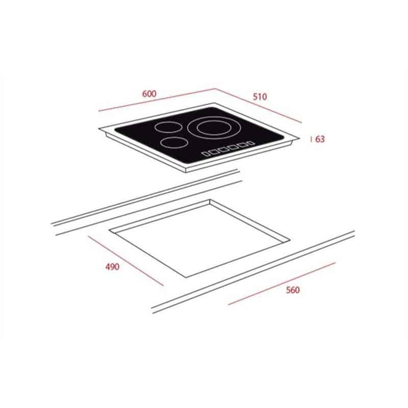 – Bếp có 3 vùng nấu với tổng công suất 5600w có thể cài đặt chương trình riêng biệt cho từng bếp nấu: 01 bếp có vòng nhiệt đôi 210/270mm Ø; 01 bếp có vòng nhiệt đôi 120/180mm; 01 bếp có vòng nhiệt 145mm Ø