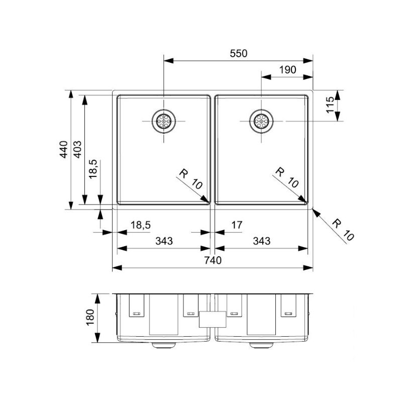 Thông số kỹ thuật của chậu rửa bát inox 2 hố Reginox NEW YORK HMH.R28223
