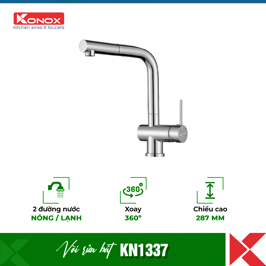 Yên tâm mua sắm Vòi rửa bát Rút Dây Konox KN1337 tại Bếp 365 – Showroom , đại lý chính hãng cao cấp nhất được chứng nhận của thương hiệu Konox tại Việt Nam , vận chuyển và lắp đặt toàn quốc.